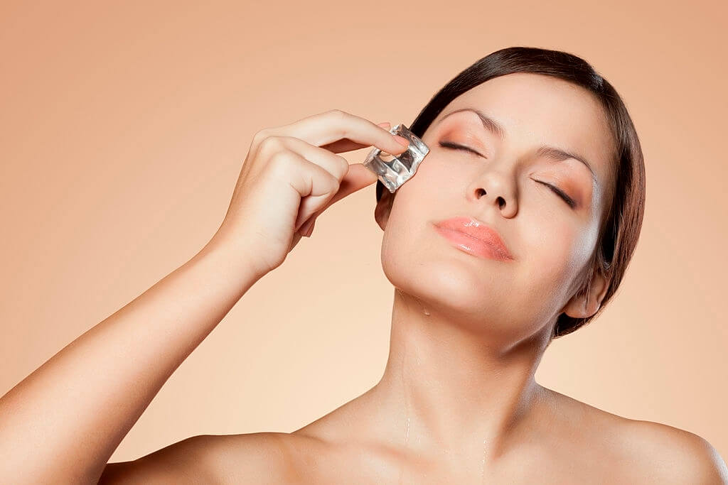 First, wash your face with your preferred face wash as you normally would. Wrap an ice cube in a cloth or thick paper towel to keep it from melting. If you don’t want to deal with the mess that melting ice would make, you may use a cold compress instead.