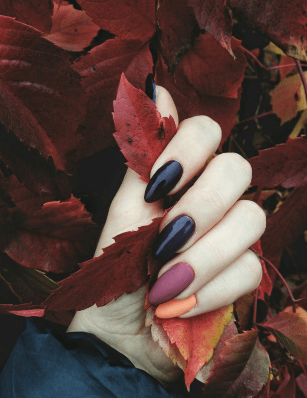 Steel blue is also perfect for your nails in fall colors. Are you wondering why? Take a look at the sky during fall thunderstorms and you’ll quickly get the answer. By opting for the polish in dark blue, your nails will reflect the cloudy sky. Just like the golden color, this shade of blue also associates with royalty and nobility. Want to hear something absolutely amazing?! While it is the coolest shade, it goes perfectly with all other fall colors and with almost any type of fall nail art. Any combination you can imagine will be awesome! So what are you waiting for! Go improvise and create your own style!