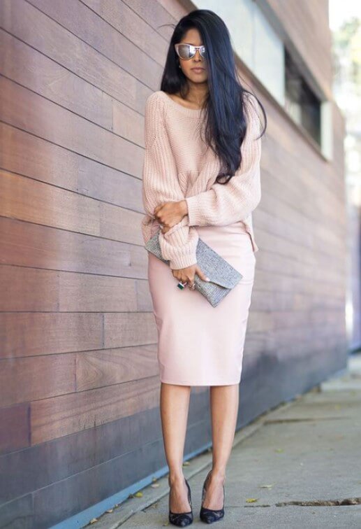 The color of the sweet romantic, pink is a sure bet for this holiday of love. For a girly and comfortable look, we fall for a powder pink sweater matched with a pencil skirt.