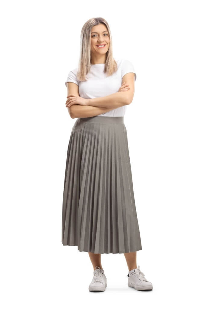 For a classic look, we opt for a pleated midi skirt matched with a flirty sweater that will surely make him smile.