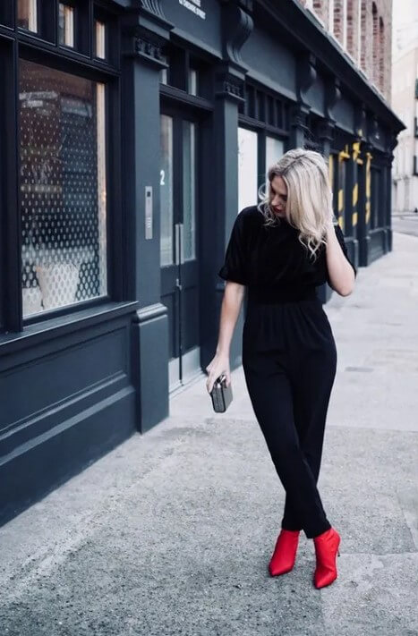 Valentine’s Outfit # 11. Red Shoes with a Black Jumpsuit