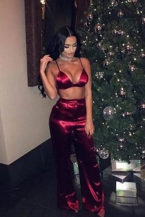 A two-piece set is always a safe bet. This two-piece satin set is ideal for Valentine’s Day. This look may be worn in a variety of ways.