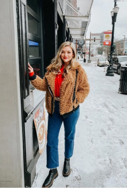 If you’re going from work to dinner, pair this flowing and comfortable shirt with blue jeans. Strappy shoes and a glittering tote purse will complete your nighttime look.