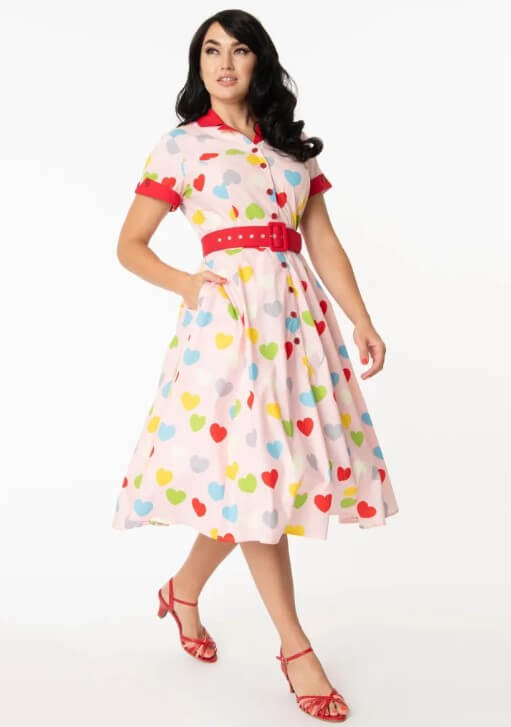 A sweet fit-and-flare heart dress that may be worn for occasions other than Valentine’s Day? Please, yes! A fit and flare dress is always a good choice!