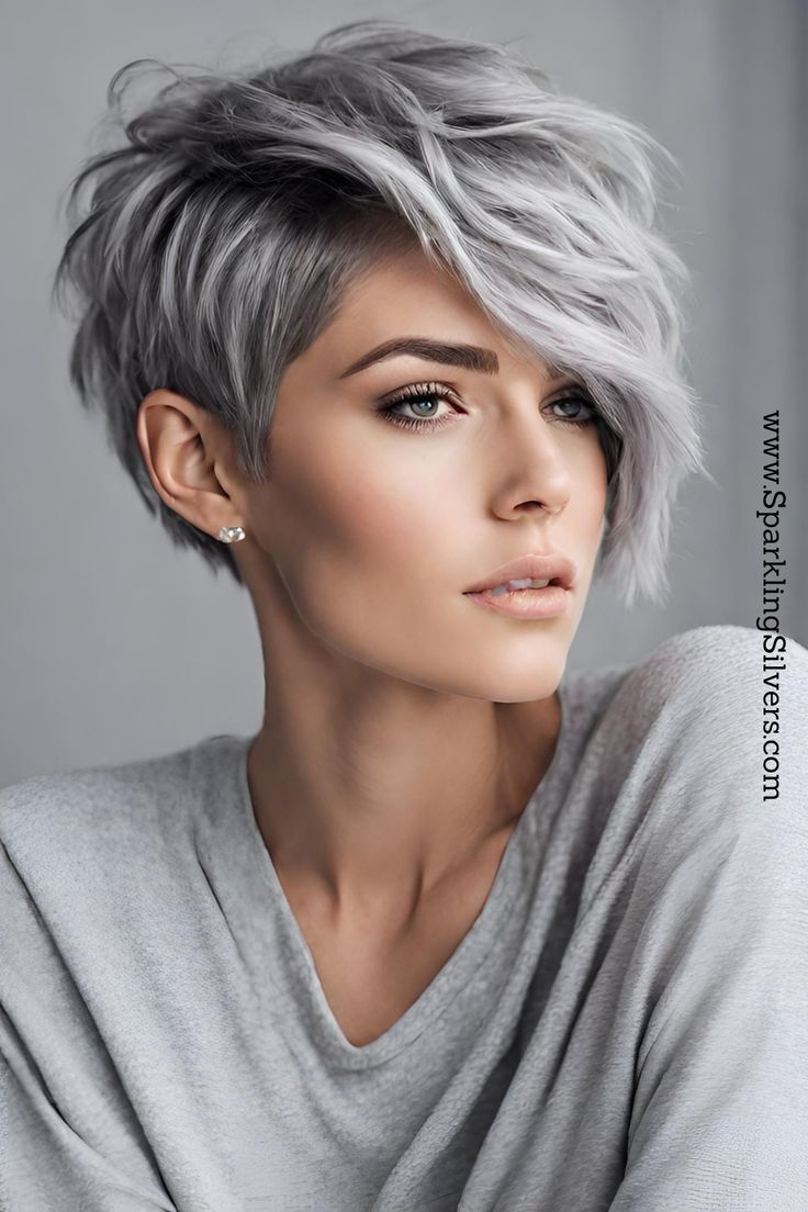 This edgy yet feminine cut adds volume and personality to your silver strands. The textured layers create movement and make fine hair look fuller. A go-to choice for anyone wanting a youthful, modern vibe.