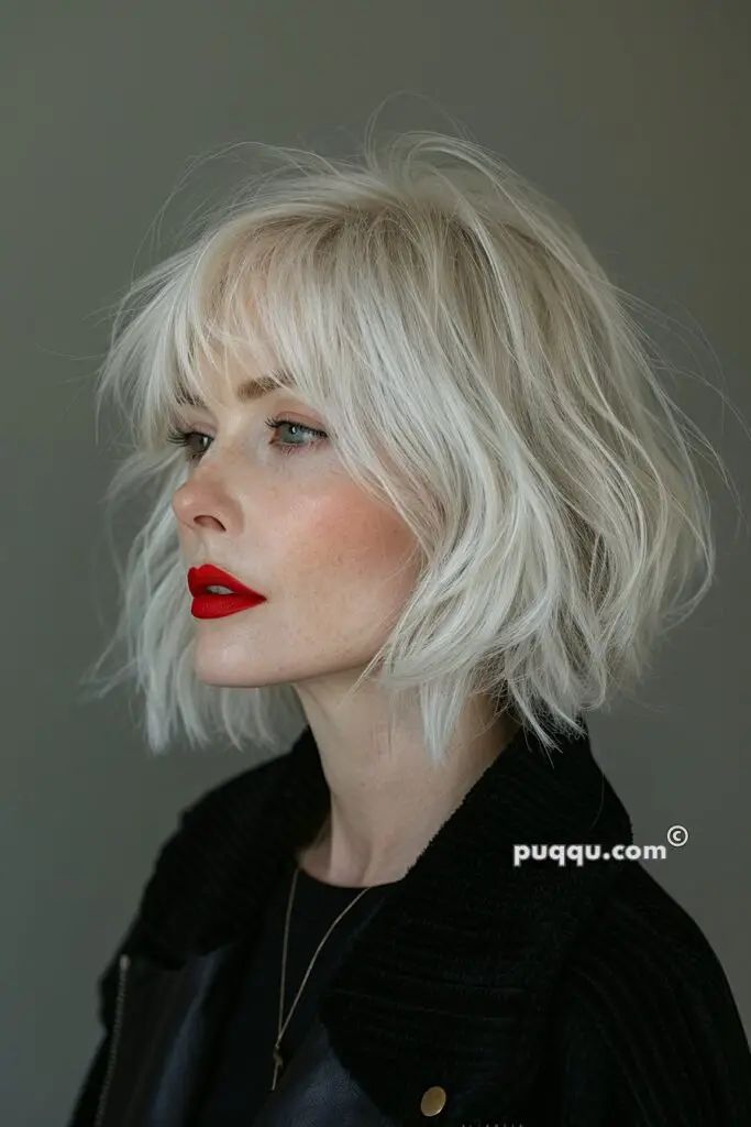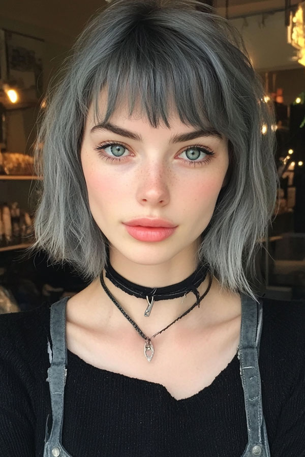 This cut combines vintage flair with modern edge. Layers create texture and bounce, making this ideal for thick or wavy hair. The silver hue enhances its rocker-chic aesthetic.