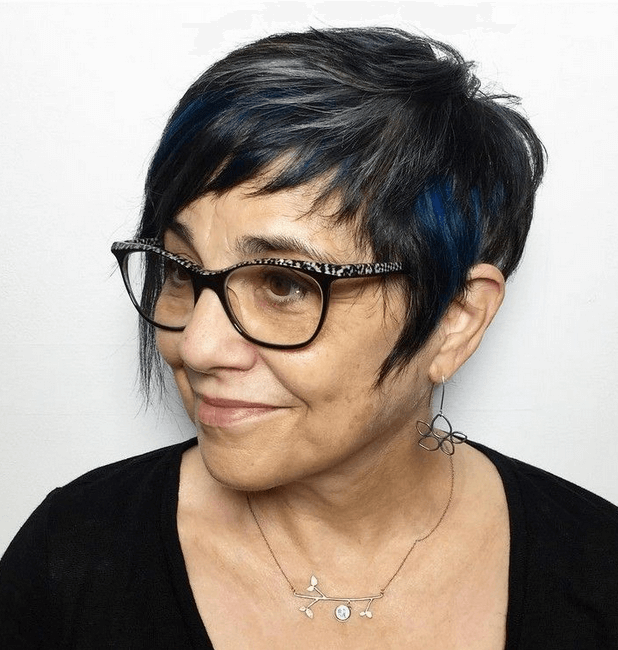 Which hairstyle for a 50 year old woman with glasses for the shape of face?