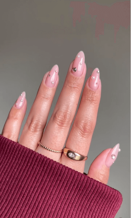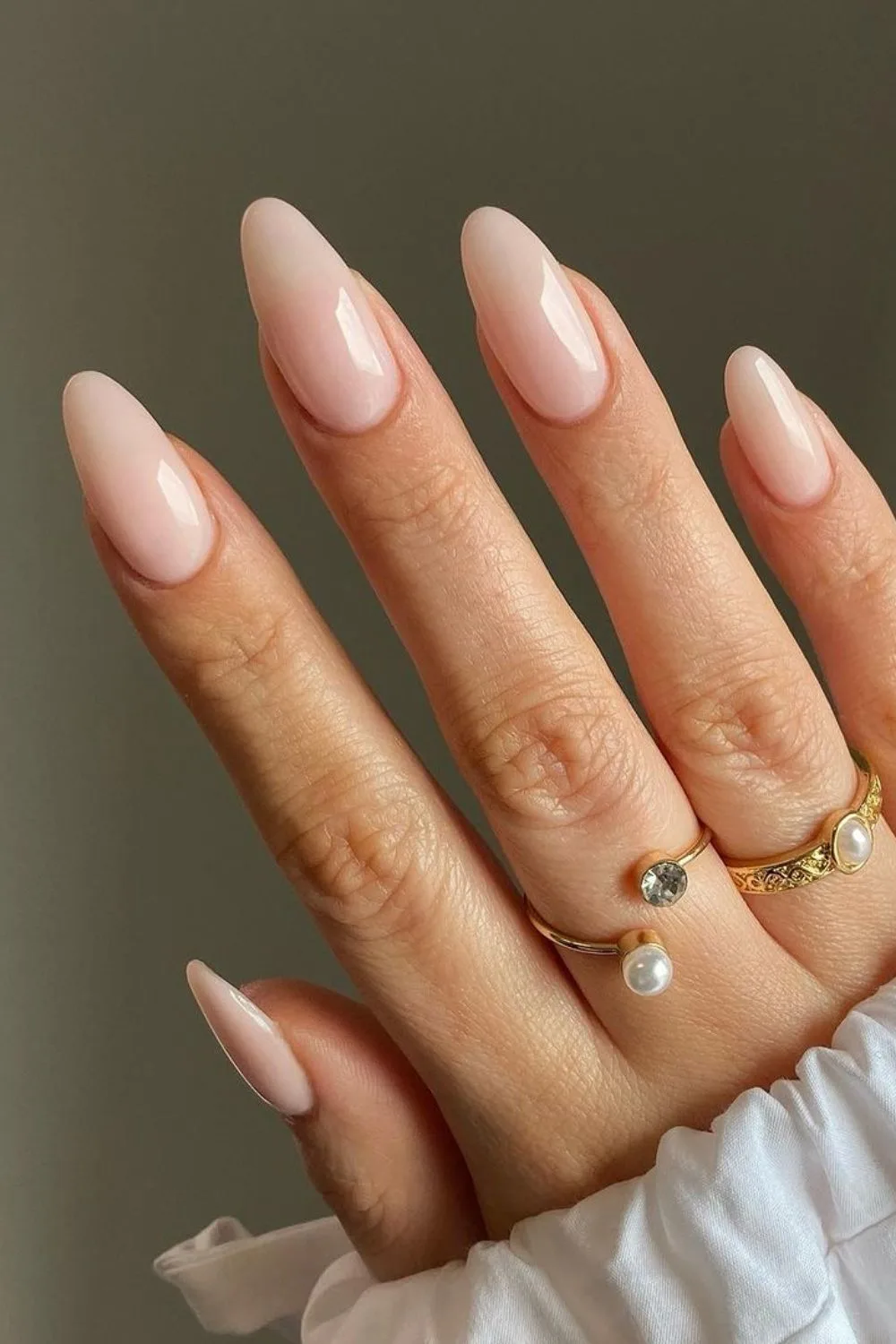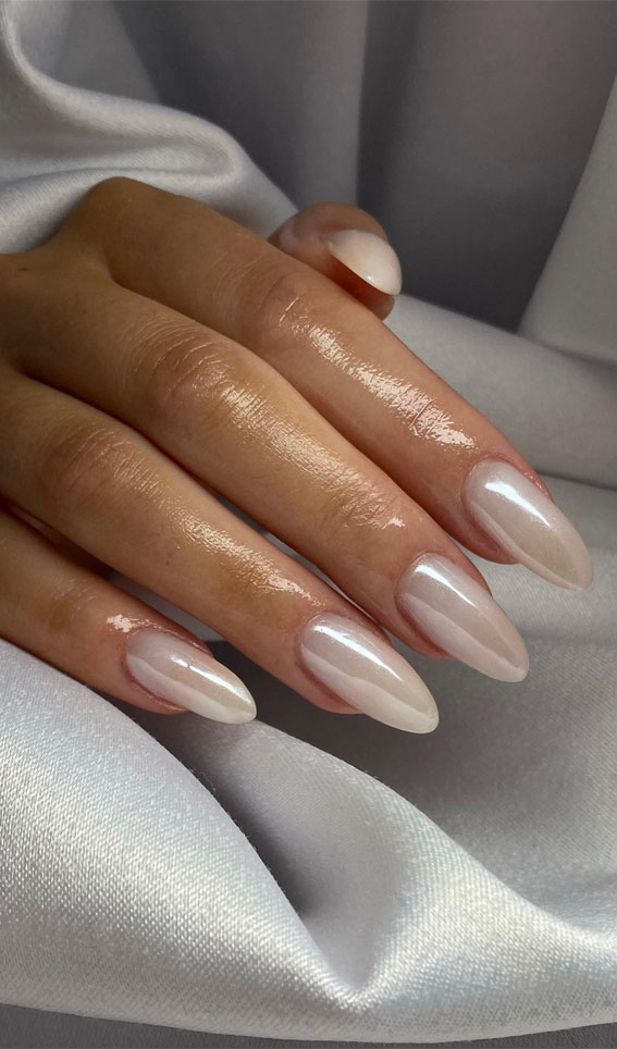You’ve seen them on Hailey Bieber, now it’s your turn. This dewy, pearlescent finish on almond nails looks fresh, glowy, and subtly glamorous. It’s minimalist nail art at its best—and yes, they really do catch the light that well. Ideal for any season or outfit.