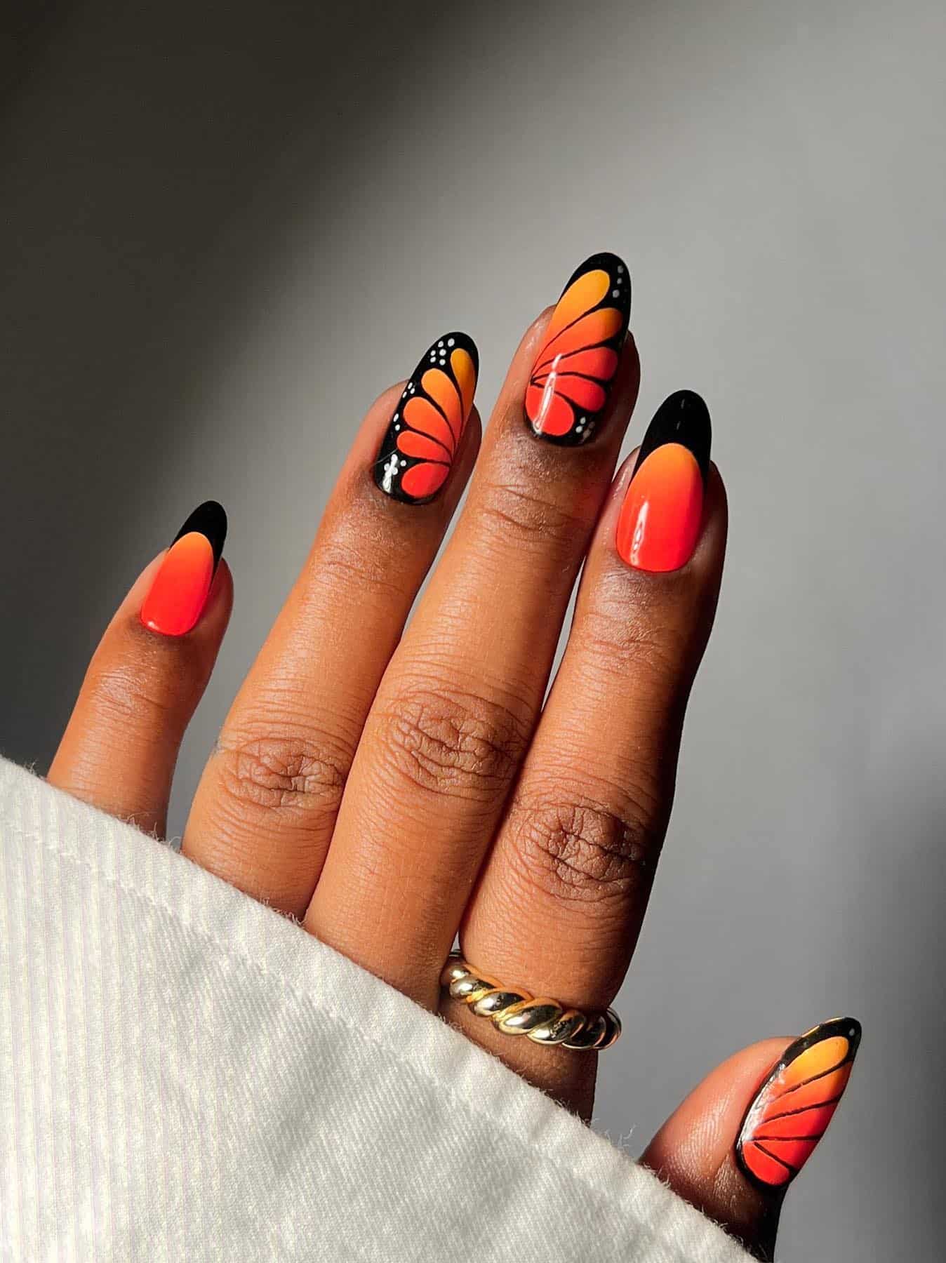 Tiny butterfly decals or hand-painted art can transform a basic mani into a whimsical beauty. Pair with soft pastels or nudes to keep the design elegant. The almond shape enhances the delicate feel of the wings. A sweet and dreamy design for springtime.