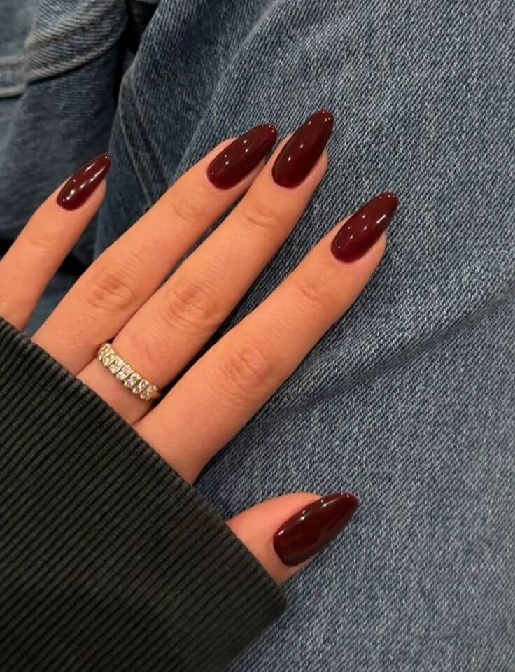 Bright red with a glossy topcoat never fails to impress. This juicy cherry hue screams confidence and classic beauty all at once. On almond nails, it strikes the right balance between bold and elegant. It’s a head-turning look for any season.