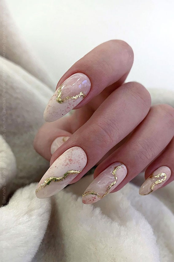 These nails mimic the look of luxury stone with white, gray, and gold veining. The flowing marble design looks polished and serene, especially on elongated almond nails. Whether you go glossy or matte, the effect is ultra refined. Great for both casual and upscale settings.