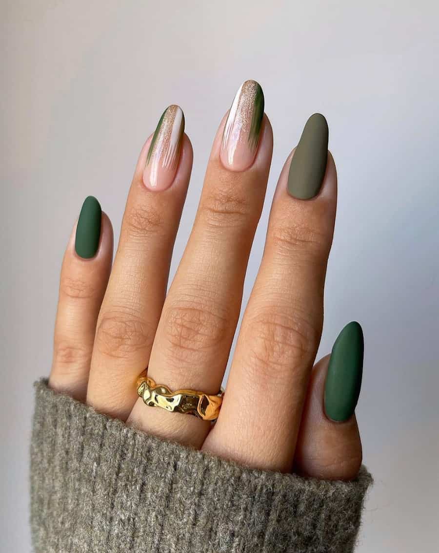 This earthy shade gets a stylish twist with a velvety matte finish. Olive green offers a modern neutral vibe that’s both trendy and wearable. On almond-shaped acrylics, the color feels grounded yet elevated. It’s a great pick for fall or fashion-forward minimalists.
