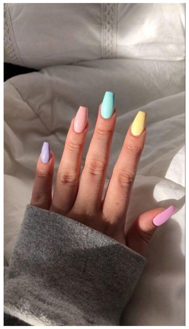 For a cheerful and sweet mani, try soft pastels that blend into one another seamlessly. This rainbow fade is light, airy, and full of charm without being overwhelming. The gradual transition between shades feels magical on almond nails. It’s like wearing a sunrise on your fingertips.