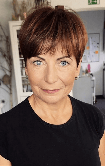 Of course, chicks who want to continue coloring their hair will not be banned from feminist society! The color and more precisely the coloring technique can totally change the appearance of your 60’s woman haircut. For example, a pink shading can modernize it, a honey sweep creates the optical illusion of lush hair, copper hair is able to make your skin tone look less dull and so on.