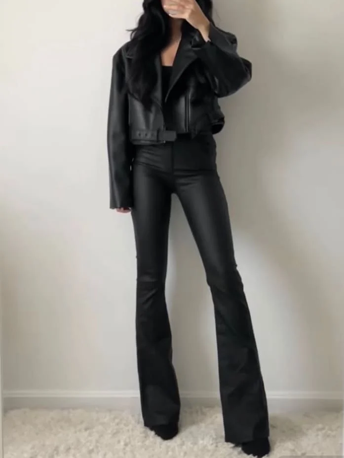 Put twice as much leather on for a bold and fashionable effect. A dramatic statement may be made with a leather jacket and flared leather trousers, and when you add heels, you’re looking like a fashion queen. Ideal for moments when you want to exude style and authority.