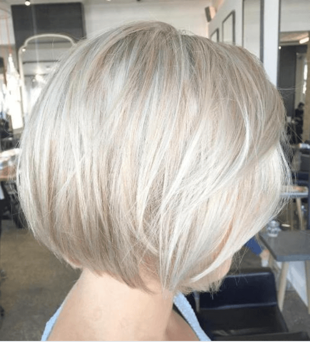 Bob haircuts for fine hair are ideal when your hair has been damaged by bleach. While platinum blonde is beautiful, it’s hard on your strands. Your hair is easier to manage when you have a short, simple cut. You need to moisturize and nourish it with serums and oils to prevent breakage and promote a healthy shine as in the picture up.