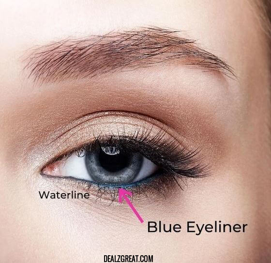 Apply your blue eyeliner pencil to the lower lash line’s waterline.