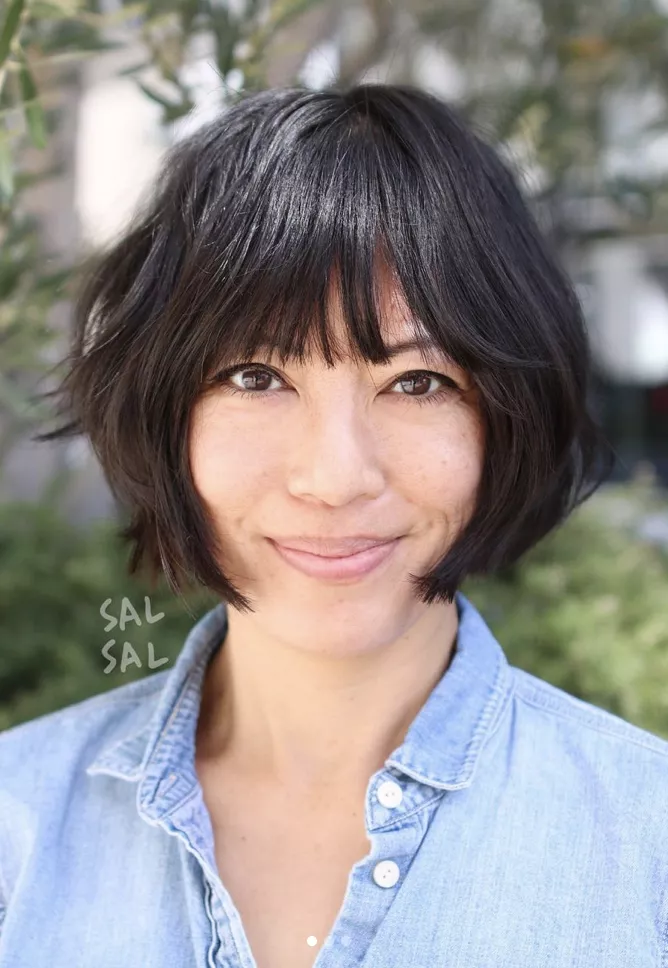 11. A Choppy Bob at the Chin Length with Micro Bangs