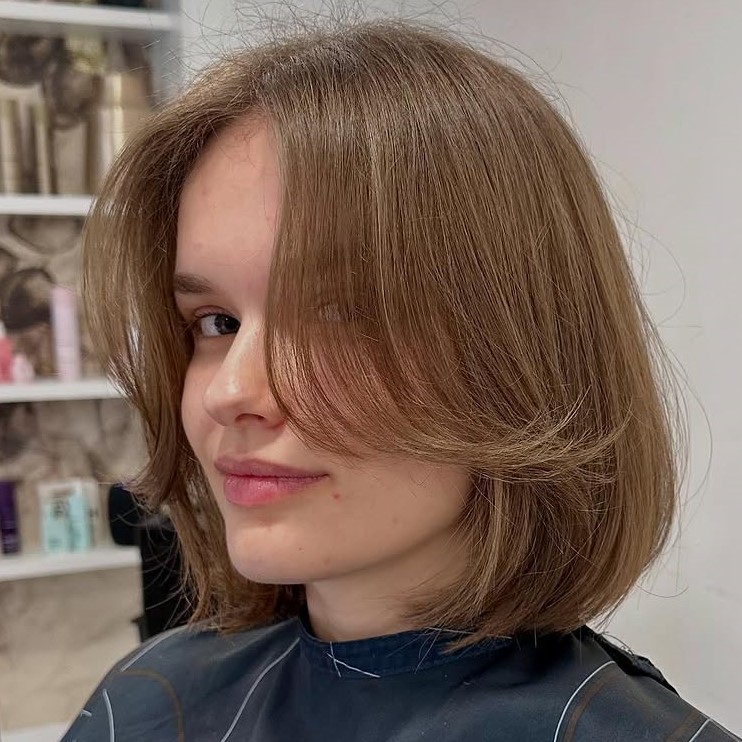 A square face has strong jawlines and a broad forehead. To balance these features, opt for a choppy bob with layered, wispy ends or curtain bangs. Avoid super blunt cuts that emphasize squareness.