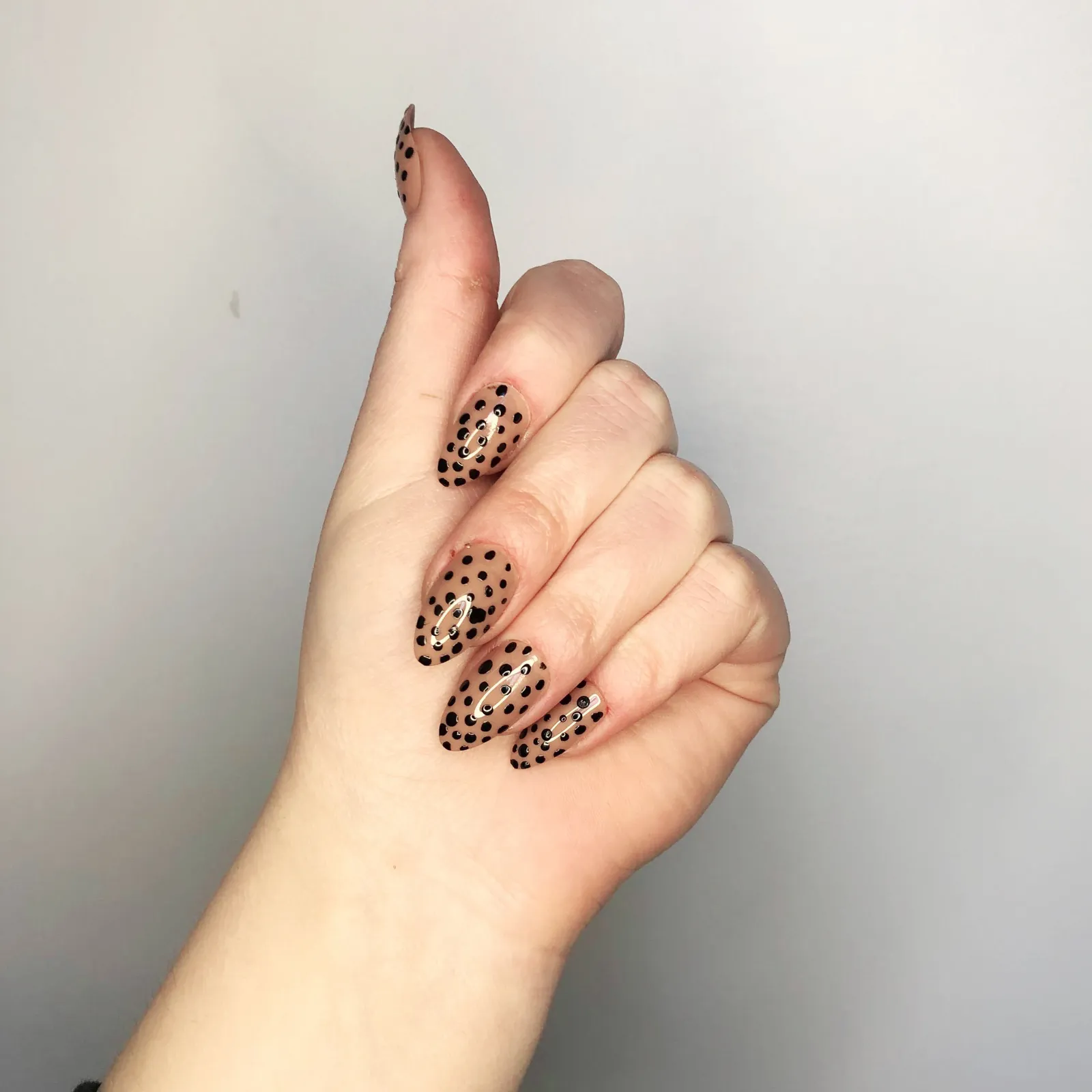 Transform your dots into animal print-inspired patterns like leopard or cheetah spots for a fierce, trendy manicure. This edgy look combines classic polka dots with wild flair, making it perfect for fashion-forward individuals. Pair with neutral colors to let the print pop.