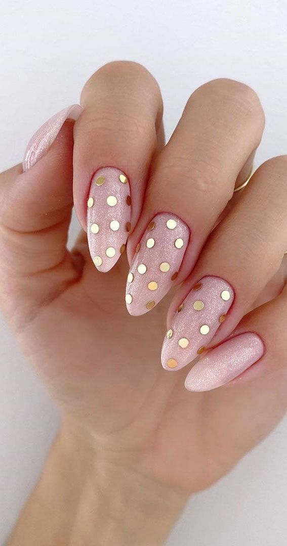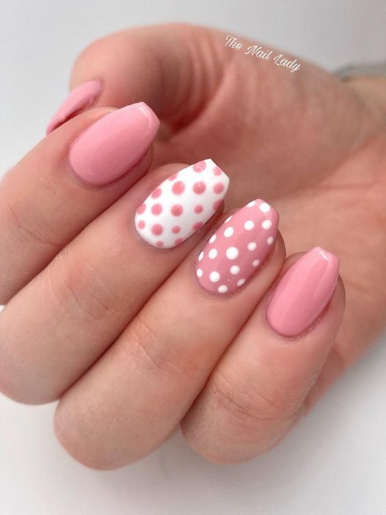 Tiny white or pastel dots on light pink backgrounds create a cozy and welcoming look. With attractive but understated nails, this feminine style is ideal for informal situations or daily wear. It’s a simple method of remaining stylish and appealing.