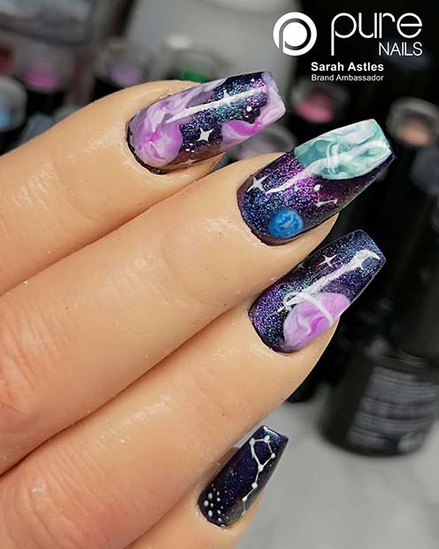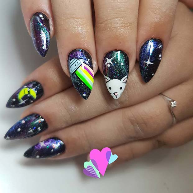 18. Fun Outer-Space Nail Design
