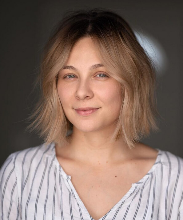 Layered bobs go well with balayage. Make yours stand out with a dark root shadow and brushed-out waves.