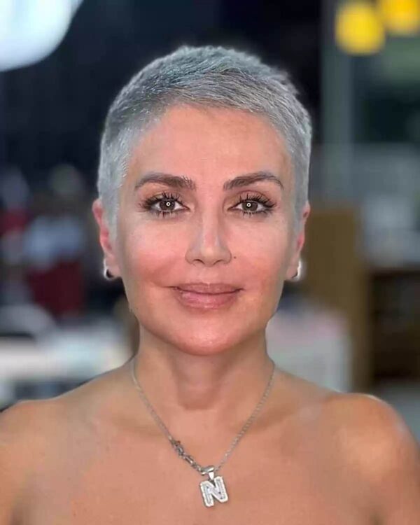 Celebrating those silver strands with a chic pixie? Now that’s confidence and elegance wrapped in one.
