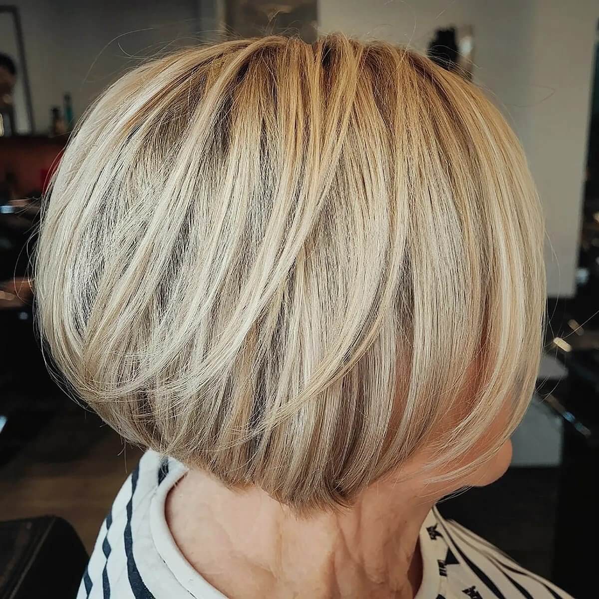 The stacked bob gives you major volume at the crown, which is exactly where most of us need it after 60.