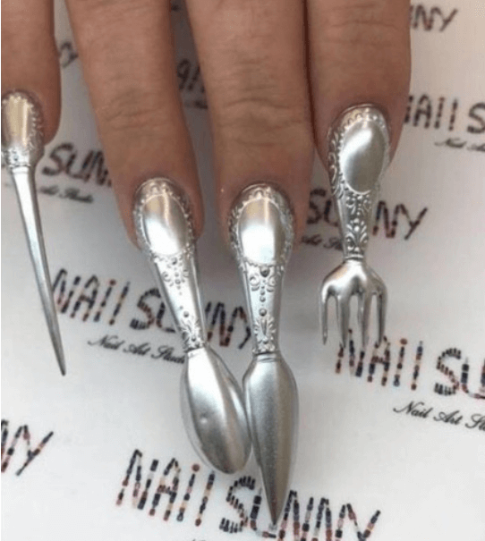 You can always use your cutlery nails if you don’t have a clean fork, right? Is that what this nail art is attempting to convey? Or are there simply people who are obsessed with cutlery?