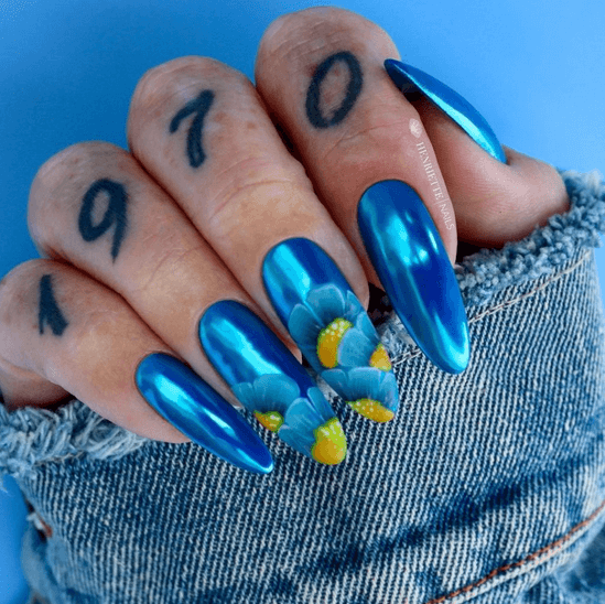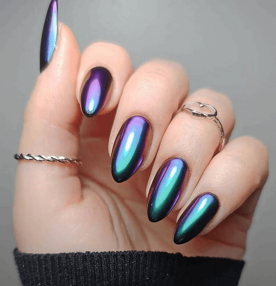 This will undoubtedly be the most lavish and eye-catching nail style of 2025. The best thing is that it reflects light in hundreds of various hues, creating a one-of-a-kind mirror appearance.